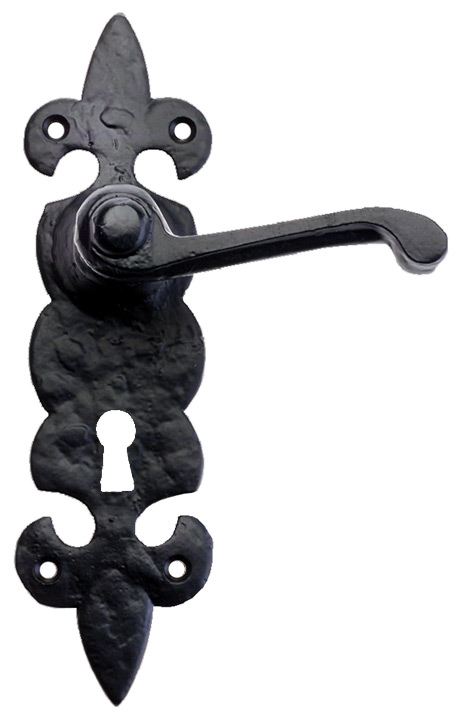 Fullbrook black antique style Fleur de Lys euro door handles measuring 200x 50mm. Supplied complete with connecting bar & screws. To be used with a euro profile lock case. ...