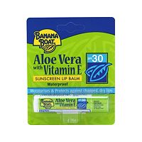 24 Advantage card points. Banana Boat Aloe Vera with Vitamin E Lip Balm SPF 30 is waterproof, helps soothe your lips, & keeps them soft & supple. It also helps prevent sunburn & defends your lips from harsh ultraviolet rays. FREE Delivery on orders over 45 GBP. ...
