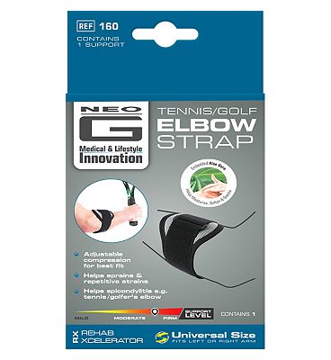 76 Advantage card points. This Neo G RX Tennis/ Golf Elbow Strap is constructed from breathable fabric & is specifically designed to help provide dynamic compression & support to the forearm muscles & elbow tendon complex. See details below. Always read the label. FREE Delivery on orders over 45 GBP. ...