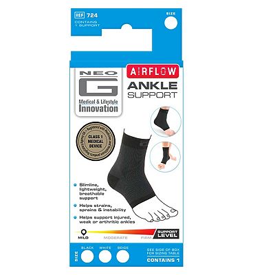 88 Advantage card points. The Neo G Airflow Plus Ankle Support features silicone joint cushions on either side to help protect, support & reduce impact on the ankle joint. See details below. Always read the label. FREE Delivery on orders over 45 GBP. ...