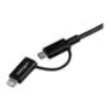 Charge or sync your Micro USB (Universal Serial Bus), iPhone, iPod or iPad device using a single cable. Tired of carrying around multiple cables for charging & syncing your different mobile devices? This convenient 2-in-1 cable lets you charge & sync either your Apple Lightning equipped devices or your Android mobile devices, through an available USB (Universal Serial Bus) port on your PC or Mac computer. Offering both a Lightning connector for your iPhone, iPod or iPad & a Micro USB (Universal Serial Bus) connector for your Android phone or tablet, this is the perfect cable for all your mobile charging needs. The LTUB1MWH white 2-in-1 charge-&-sync cable is Apple MFi certified.