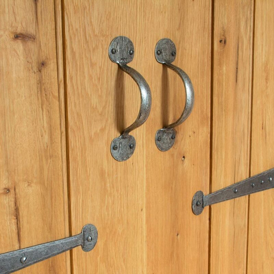 This Bean pull handle is made from hand-forged iron. It is a high quality product, with a pewter patina finish and hand forged using traditional English blacksmithing methods.
