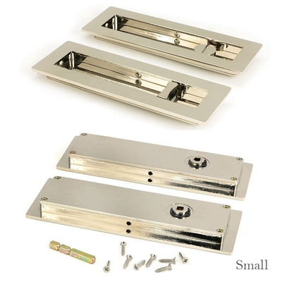 This Rectangular Pull Handle Privacy Set is made from brass with a polished nickel finish. The handle combines functionality, traditional looks & durability & is ideal to use on sliding, pocket & flush door systems.