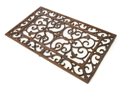 This Rectangular Scroll Doormat is made from solid cast iron with a rust effect finish. This ornate door mat will enhance any entrance transforming it into something quite splendid. Also avilalbe in a semi circular version.