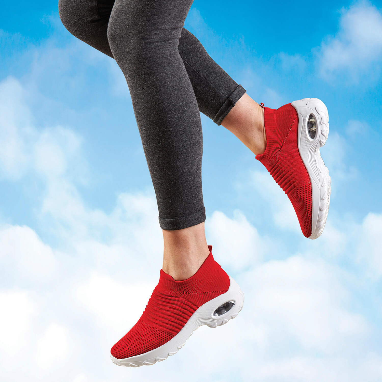 Fly-knit ‘air cushion’ trainers put extra bounce in your step It’s no coincidence these trainers are called ‘Cloud Walkers’! They feel like you’re walking on air! Pull on (no fiddly laces) and embrace their soft, breathable fly-knit uppers and memory foam inserts. You’ll forget you’re wearing them – even after a day on your feet! Take your first steps and feel the stable ‘air cushion’ rebound from heel to toe, absorbing pressure from hips, knees and back. Ladies’ sizes, 4-8. Choose French navy (FN), crimson (CRM), stone (ST).