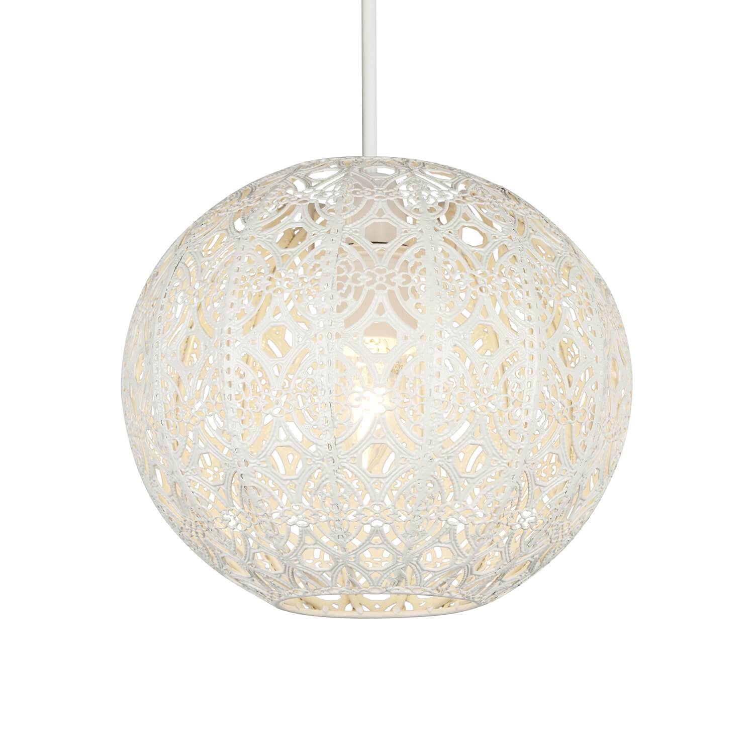 The beautiful Fretwork globe shade has a cream mild steel finish that gives off a warm & inviting look in your home. Use this decorative piece in a bedroom or living room. Dimensions: L23 x W23 x H20cm