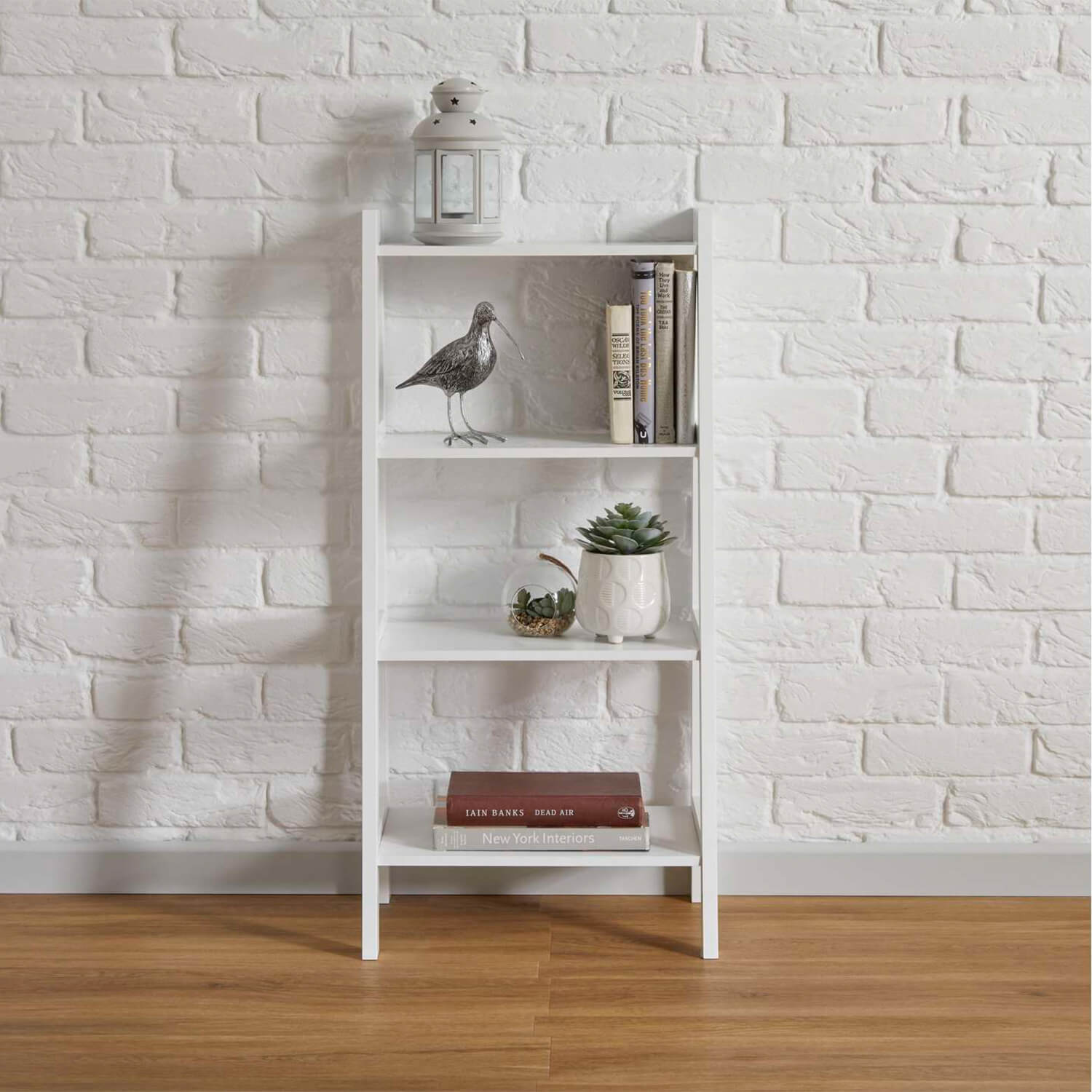 Step up your decluttering with this fabulous fella! Ideal for lotions & potions, towels, or add some baskets for an easy way to store all those bathroom essentials. This contemporary white painted ladder storage features four various sized shelves which are sturdy & quick to construct. Fresh & white with a simple tongue & groove style, it's a quick & easy way to give your bathroom storage an instant refresh. Wipe clean with a soft cloth.