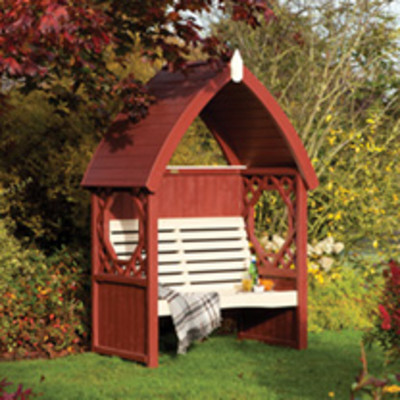 British designed & built arbour Side panels half tongue & groove & half lattice with octagonal motif Tongue & groove back panel Tongue & groove roof Shaped seat for comfort Supplied painted in Ronseal Bramble & Elderflower Manufactured from quality FSC softwood Easy 2 person assembly Comprehensive instructions & all fittings included Dimensions: EXTERNAL 2195mm height, 1470mm width, 925mm depth. FOOTPRINT 1335mm width, 480mm depth. SEAT 1200mm width, 480mm depth. (PLEASE NOTE: A postage surcharge per item ordered is applicable.)