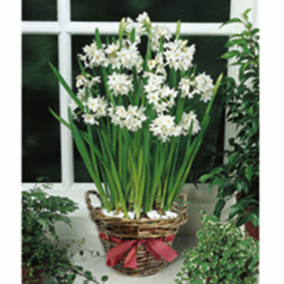 10 delicate Paperwhite narcissus nestle in their pretty 16cm willow-ribboned basket. Brighten up the festive season with a beautiful display of indoor bulbs. They are supplied in bud & will quickly burst into bloom! BUY ANY 3 ITEMS from Hyacinth blue, white, pink, Narcissus Paperwhite & Narcissus Tete-a-Tete & SAVE 15.00!