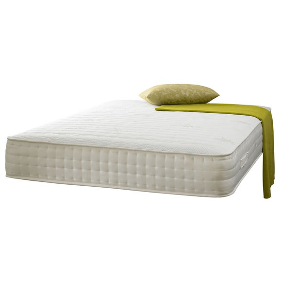 A comfortable hypo-allergenic mattress with pocket springs & a layer of sumptuous memory foam.- 1000 individually pocketed springs- 7cm of memory foam- Non turn, hypo-allergenic mattress- Hand side-stitch effect border- National Bed Federation (NBF) approved Stay comfortable & supported at night with the Active Shire Aloe Vera 1000 Pocket Memory Mattress. With 1000 individually pocketed springs & a layer of sumptuous memory foam, this mattress is sure to give you a great night's sleep for years to come. Please note: Spring count refers to a 5ft Kingsize model. Please note, unfortunately we cannot deliver this item to the Channel Islands.[ Click here] (https://www.dunelm.com/infodocs/downloads/ Furniture-Sizing-Guide.pdf) to check out our handy sizing guide to help you find out if you’ll be able to get your new mattress into your home. ...