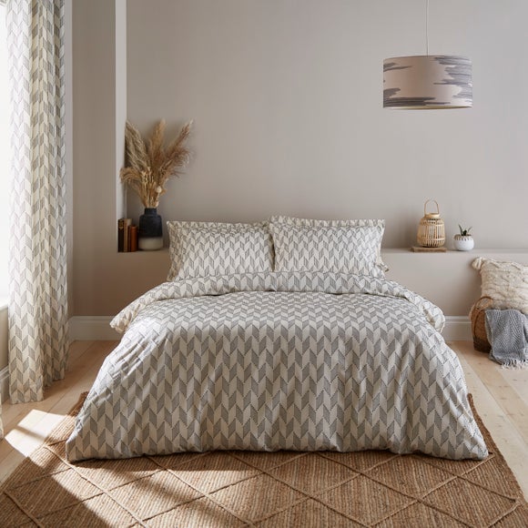 * Eyelet header * Blackout lining * Coordinating bedding available to purchase separately * Available in 3 sizes Add a classic touch to your home with our Andra Clipped Jacquard curtains, designed with an easy to fix eyelet header for elegant loose pleats in between. Featuring a style clipped jacquard print, It comes complete with a blackout lining, reducing unwanted light from entering the room, giving you a peaceful night sleep. Available in 3 sizes to fit a variety of windows.MADE IN GREEN by OEKO-TEX® is a unique product label to trace the countries & production facilities