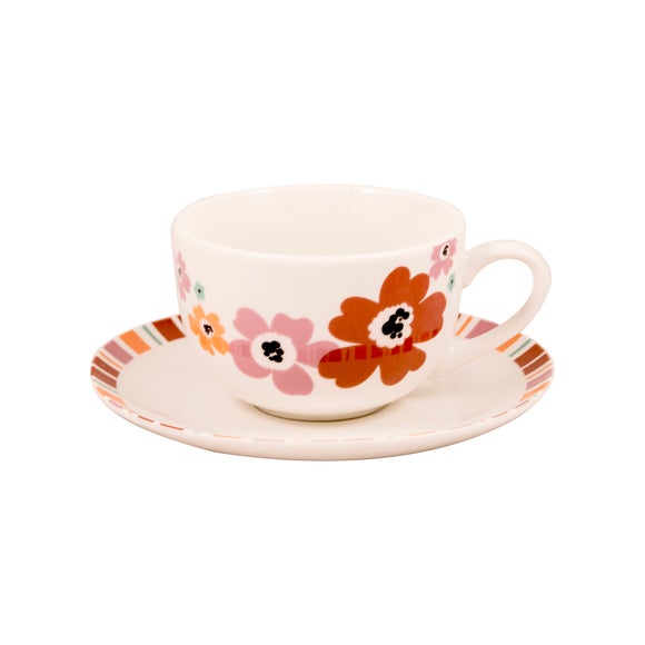 Serve your favourite hot drinks in this porcelain barrel mug, designed with a vibrant multi coloured stripe pattern & a comfortable handle for easy use. • Striped design• Dishwasher safe• Microwave safe• Porcelain mug Crafted with an attractive design of multi coloured stripes & a floral motif on the inside, this porcelain mug will bring a burst of warm colour to your kitchen cupboards & dinnerware. Dishwasher safe for your convenience, this floral mug can be cleaned with ease between uses making it ideal for everyday use. Microwave safe, this colourful mug can also be used to re-heat drinks & soups should its contents get too cold. Why not coordinate this stripe mug with other matching dinnerware options also available from the Aster Collection to complete the look. Brand Dunelm Colours available One colour available in Red Dishwasher safe Suitable Material Porcelain Microwave safe Suitable Pack size One mug Pattern Patterned Sizes available One size available in W 9cm (4") x L 12cm (5") x H 9cm (4")