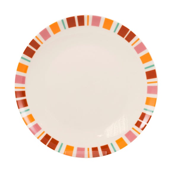 Perfect for eating breakfast or dinner away from the table, our floral dinner tray features a bold & bright flower pattern with red border finish. • Lap dinner tray• Bright floral design• Made from melamine Finished with a bright & vibrant floral pattern across the face, our colourful dinner tray brings a dynamic splash of colour to your home. Suitable for a range of uses, our multipurpose tray is ideal for serving up breakfast in bed, a meal in front of the TV or providing you with a handy surface to work from. Crafted from sturdy melamine, our plastic dinner tray offers a robust & durable surface that insulates heat & is simple to clean, making it ideal for everyday use. Why not coordinate a bright floral look with matching dinnerware also available from the Aster Collection. Brand Dunelm Care instructions Wipe clean with a damp cloth Colours available One colour available in Red Material Melamine Pack size One tray Sizes available One size available in W 33cm (13") x L 44cm (17") x H 6cm (2")