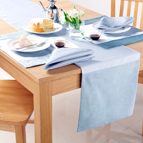 Featuring velvet edges with plain centre & finished with a subtle sheen, this faux silk fabric placemat offers an elegant finish for your dining room. ? Two colours available? Soft velvet & polyester panels? Machine washable Perfect to use for your everyday dining needs, this placemat is available in a choice of colours to add style to your dining table. Use this placemat to protect your dining table from any accidental food stains & drink spillages, the soft polyester & velvet material suitable for a quick machine wash, so you can keep it looking crisp & fresh at all times. Ask Dunelm a question Brand Dunelm Colours available Duck Egg (Blue), Lilac (violet) Composition Face 100% polyester faux silk, Panels 100% polyester velvet Drying instructions Tumble dry on a low heat setting Ironing instructions Iron on a cool setting Material Polyester faux silk, polyester velvet Pack size One placemat Pattern Patterned Sizes available One size available in 35cm x 48cm (14" x 19") Washing instructions Machine washable ...