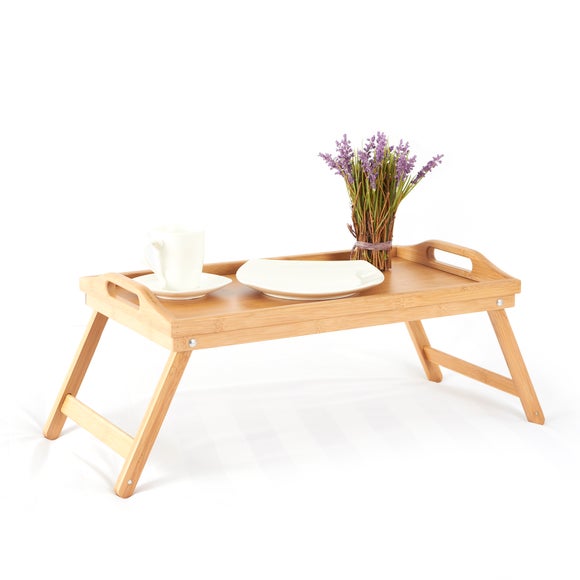 Serve up breakfast in bed on a lazy weekend morning with our delightful folding bamboo bed tray, available to buy online today. Enjoy breakfast in comfort with our easy to carry lap tray Featuring two handles built into the sides & a simple folding design, our wooden lap tray provides you with an easy way to enjoy breakfast from the comfort of your own bed, great for lazy weekend mornings. Our sturdy bamboo bed tray also has a slightly raised lip around the edge, so in case you do spill your orange juice or tea, you wont have to worry about it dripping onto your bedding. The simple design also allows the legs to fold in under the tray for easy storage or using elsewhere around the house. Please note: This product is subject to stock availability. Ask Dunelm a question Brand Dunelm Care instructions Wipe clean with a soft cloth Colours available One colour available in Brown Material Wood Pack size One bed tray Sizes available One size available in W 50cm (20") x L 30cm (12") x H 16cm (6") ...