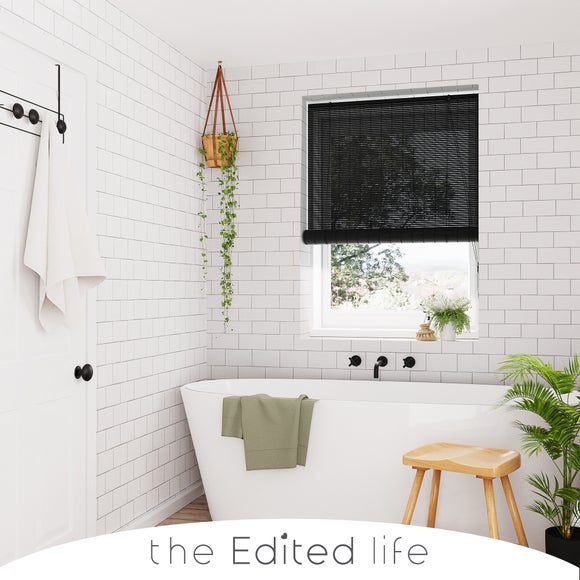 - Bamboo Black Roller Blind** Bamboo is versatile, renewable, & can grow quickly with little water, making it a practical & sustainable raw material that's also durable enough for daily use. Add a natural feel to your window with this Bamboo roll up blind finished in a contemporary black colour way. The tightly woven bamboo blind lets natural light gently stream through whilst still providing privacy. Boasting easy installation, this roller blind would suit a variety of home decor styles & is perfect for giving your home a quick & simple style update. This roller blind is available in a choice of sizes to fit your windows & comes with all fixtures included.** Livewell. Mean well. Be well.** Many of uswant to live simpler lives, to reduce our impact on the environment, & improve our wellbeing. As we become more aware of our surroundings & understand how our choices contribute to the world around us, more people are choosing to consume less & curate more. The Edited Life introduces a new era of thoughtfulness in the home, with an understated collection of pieces chosen for their simple beauty, quality craftsmanship & innate usefulness that will last beyond any trend. Having it all is no longer the goal; having enough, & itbeing just right, is.