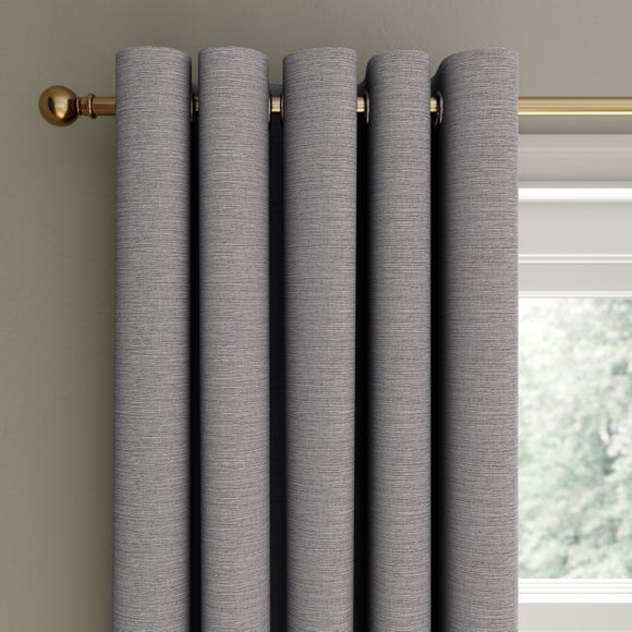 * Pair of eyelet curtains* Neutral monochrome colour* Bamboo & cotton mix woven fabric* Fully lined* Stainless steel heading Decorate your windows with this mellow & uncomplicated pair of eyelet curtains in a simple monochrome colour. With a natural striped woven texture, this plain & minimal style of fabric will fit well into any space of the home. A mix of bamboo viscose & cotton creates a strong & unique textile structure & paired with the durable stainless-steel eyelet heading, creates a great shape & form for the curtains to hang. This pair of curtains comes in multiple size options & colourways, is fully lined & easy to install with the simple eyelet heading. ...