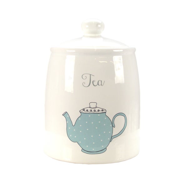 Available to buy online today, our vintage patterned tea canister will add a sweet touch to your kitchen essentials. Keep your tea in best condition with our white tea jar Our tea container is decorated with a cute & quirky illustration of a small blue & white polka dot teapot on a natural backdrop with the word " Tea" for a look that will blend timelessly with your existing kitchen decor & coordinate with your other kitchen essentials. Add simple style to your worktops or shelves with the sweet tea themed design of our kitchen canister, perfect to complement a more traditional & classic decor theme. Help keep your tea bags & leaves fresh, dry & cool in our white canister ready to use in your drinks. Take a look at similar items from our Vintage Tea Cups Collection to complete a beautifully coordinated set for your kitchen. Please note: This product is subject to stock availability. Ask Dunelm a question Brand Dunelm Care instructions Wipe clean with a damp cloth Category Tea Canister Colours available One colour available in White Dishwasher safe Not suitable Material Earthenware Pack size One canister Sizes available One size available in Dia. 11cm (4") x H 15cm (6") ...