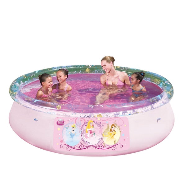 A gorgeous & spacious paddling pool featuring Disney princesses which is easy to set up. Your girls with love this gorgeous pink pool featuring Disney princesses on the front. It is made from 3 separate layers of material; the inner layer of polyester mesh is laminated to the outer layers of heavy gauge PVC to ensure a solid, sturdy construction for the pool. The liner is supported by an inflatable top ring which allows the pool to rise as it is filled with water when ring is inflated. The pool is easy to drain with a flow control valve which attaches to a garden hose for drainage away from the pool area & comes with a heavy duty repair patch & full colour box to keep your pool in good conditions for years to come. Water capacity 2, 300L (80% of pool) 3 layers of material Polyester & heavy duty PVC Inflatable top ring Includes:: heavy duty repair patch Includes:: full colour box ...
