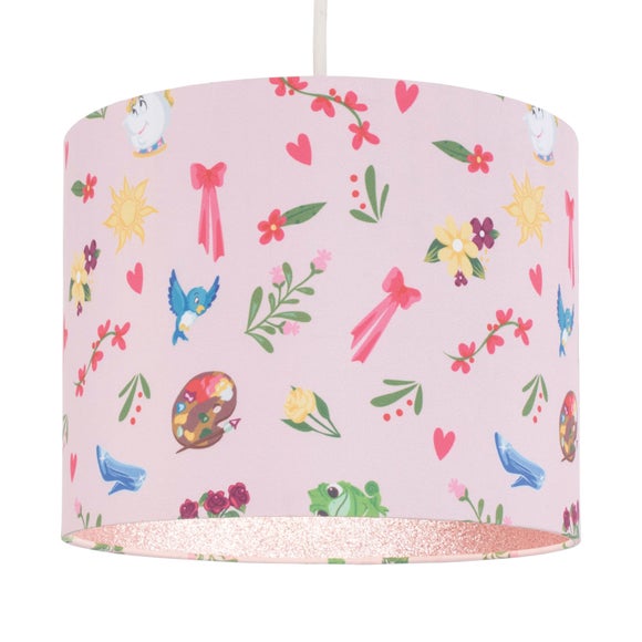 This beautiful Disney Princess patterned pendant shade features pink glitter lining for a magical sparkling feel in your child's bedroom. Crafted from cotton, it comes in a drum shape & matches other Disney Princess products available. ...