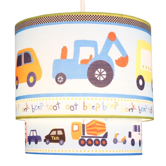 With a cotton fabric finish, this two tier pendant shade is printed with a colourful & fun transport design featuring various vehicles & traffic noises. ...