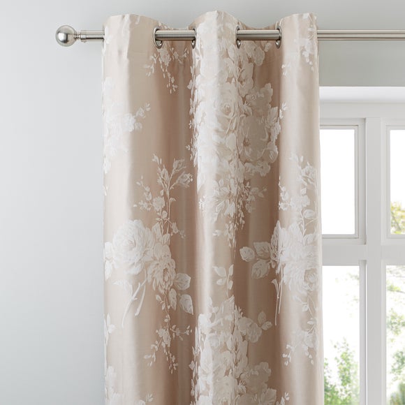 Featuring a cream floral jacquard design on a gold background, this pair of eyelet curtains is crafted with a thermal lining to help regulate the temperature in your room. Available in a choice of sizes to purchase online. ...