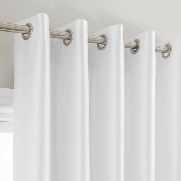 Designed in a plain white colour way suitable to compliment all types of decor, this pair of Montana curtains have been finished with a modern eyelet heading & are fully lined to prevent draughts, whilst helping to minimise light from entering the room. With a stylish sheen finish these curtains add effortless depth to any room & are available in a range of sizes. These curtains have been heat set for added durability, crease resistance & shape retention. Please note: these curtains are sold as a pair.