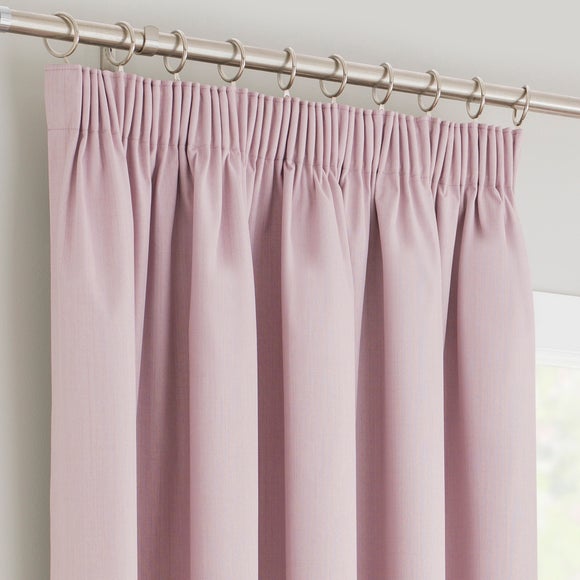 Designed with a premium blackout lining to provide maximum edge-to-edge light block, this pair of Solar curtains feature a subtle two-tone fabric & are finished in a soft pink. The temperature smart design allows these curtains to insulate your home by blocking cold draughts in winter & reducing heat in summer, making them perfect for use in all seasons. Available in a range of widths & drops to suit your requirements, these curtains are crafted with a traditional pencil pleat header to create elegant folds. Coordinating accessories sold separately. Please note: these curtains are sold as a pair. ...