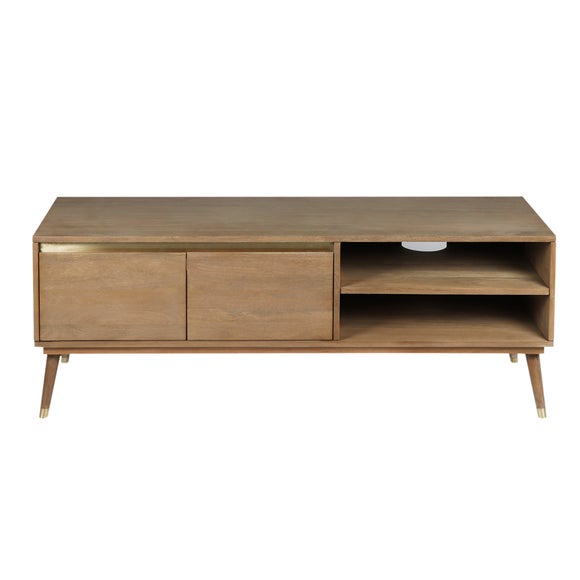 - Designed & Developed by Dunelm Made from solid Mango wood in a natural finish, the Dalia range is inspired by clean & simplistic styling. Complete with an ample storage space, this range features integral handles with a brass inlay. Designed with practicality in mind, the Dalia range is crafted with a unique detailing to add a touch of elegance & style to your home. Featuring three spacious drawers & one cupboard equipped with a full-length shelf, this partly-assembled sideboard is designed to maximise storage space, whilst giving your home a modern & contemporary look.