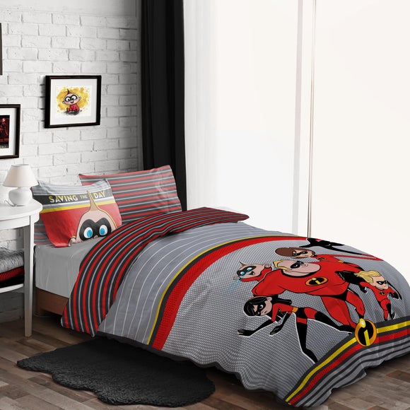 Add a touch of Disney magic to your kids bedroom with this Incredibles duvet cover & pillowcase set. This bedding set is fully reversible meaning you can choose between 2 fun designs. This bedding is made from soft easy care polycotton & has durable button closure. ...