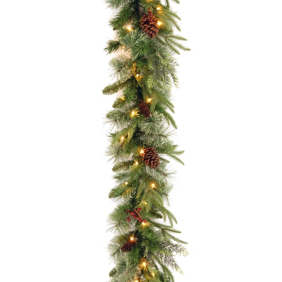 Boasting a whimsical traditional design, this 6ft Christmas garland is adorned with berry & pine cone detailing, along with 50 LED lights to add a warm, festive glow. This garland is easy to hang wherever you want in your home, with its battery-operated power supply.