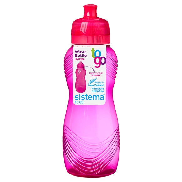 Made from dishwasher safe plastic, this 600ml water bottle from Sistema features an easy to use twist cap & comes in an assortment of colours. Please note: This Sistema product comes in one of five colours. The colour you receive will depend on the selection available at your chosen store. Please note: Place in boiling water for 30 seconds, remove & then twist the cap so the nozzle is open. Using thumbs apply pressure between the cover & the base to release the cover. Twist to remove the cover & nozzle. Clean in the dishwasher or hand wash. ...