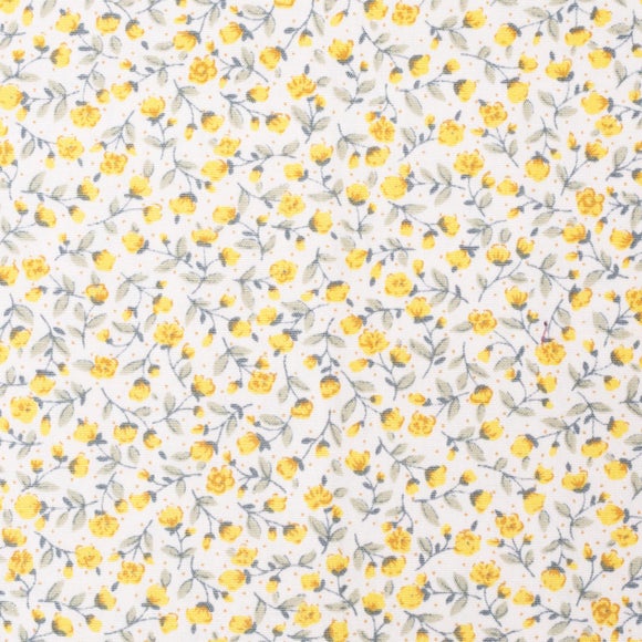 Featuring a ditsy yellow floral design on an ivory background, this 100% cotton poplin fabric is available by the meter. Because our fabric by the metre is cut to the size you require, we can only accept returns if the item is faulty (i.e. damaged or marked). ...