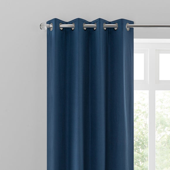 Available in a rich navy colour way & complete with a slight embossed effect, this cushion is ideal for adding a touch of modern luxury to your home. Filled with polyester hollowfibre for maximum comfort, this cushion features a removable cover for easy care. Co-ordinating eyelet curtains are available to purchase separately.