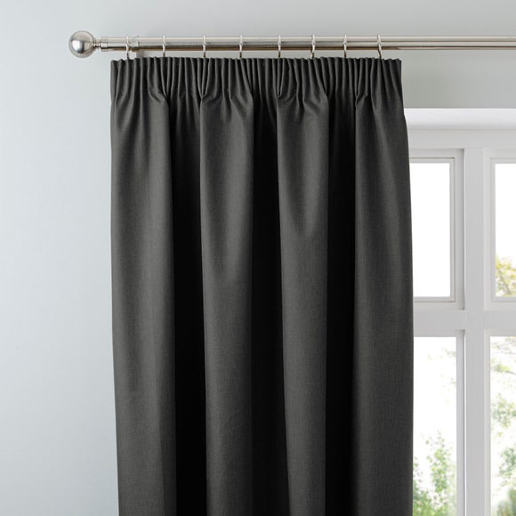 These traditional pencil pleat curtains are designed in a rich & charismatic deep charcoal, perfect for adding character & charm to your home. Equipped with a premium blackout coating, these curtains provide insulation in all seasons & reduce unwanted external light. Available in a variety of sizes to suit a range of window types. Please note: these curtains are sold as a pair. ...