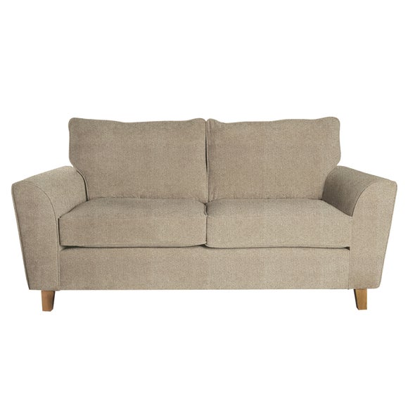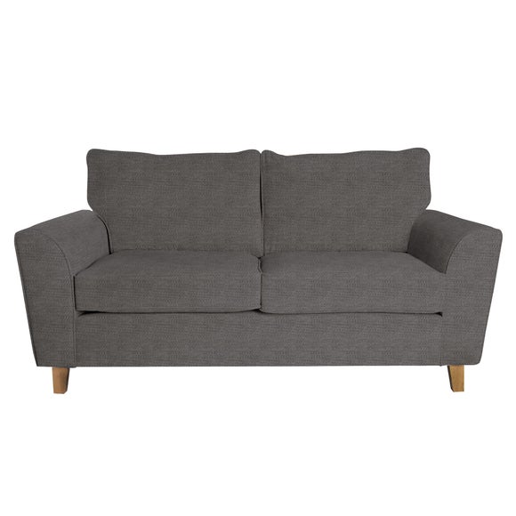 The Taylor 3 Seater Sofa Bed in Pewter is a stylish three seater sofa bed for the modern home in a timeless design. Featuring an attractive buttoned effect, the sofa has a split back & stylish wooden legs with two bolster cushions & removable arms so that you can customise the look to suit any space. It has a simple click clac mechanism converting the sofa into a comfortable double bed with a solid foam & sprung base, giving a comfortable sleeping solution. Please note, unfortunately we cannot deliver this item to the Channel Islands.[ Click here] (https://www.dunelm.com/infodocs/downloads/ Furniture-Sizing-Guide.pdf) to check out our handy sizing guide to help you find out if you’ll be able to get your new furniture into your home.