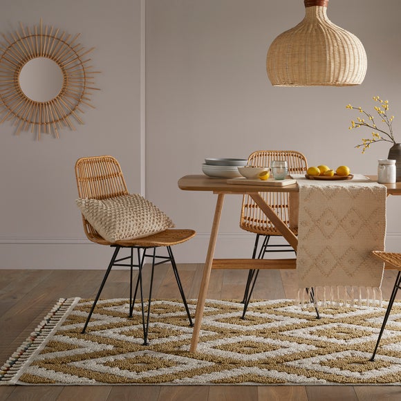Pair bold monochromatic shades with artisanal style tassels & weaving to create the ideal laid-back, bohemian centre piece. The h&-tufted effect is ideal for getting some softness into your space. In 100% polypropylene these rugs are extra hard-wearing, ideal for busy homes. Don't forget to buy our anti-slip mat [here ] (https://www.dunelm.com/product/rug-anti-slip-mat-1000002949 ), available in a choice of sizes. This is a hard wearing machine-made rug. When opening, re-roll your rug pile out & leave in a warm room for 24 hours before putting in place, this will help to reduce wrinkles & curling from packing. Do not pull any loose threads, please cut them carefully with scissors to remove. Avoid prolonged exposure to direct sunlight as this may cause fading of the colour. Turn your rug regularly to ensure even wear & to reduce pressure marks from furniture. Before using any cleaning products on your rug, test on an inconspicuous area first to ensure it does not affect the colour. Clean spills immediately by blotting with a clean dry white cloth