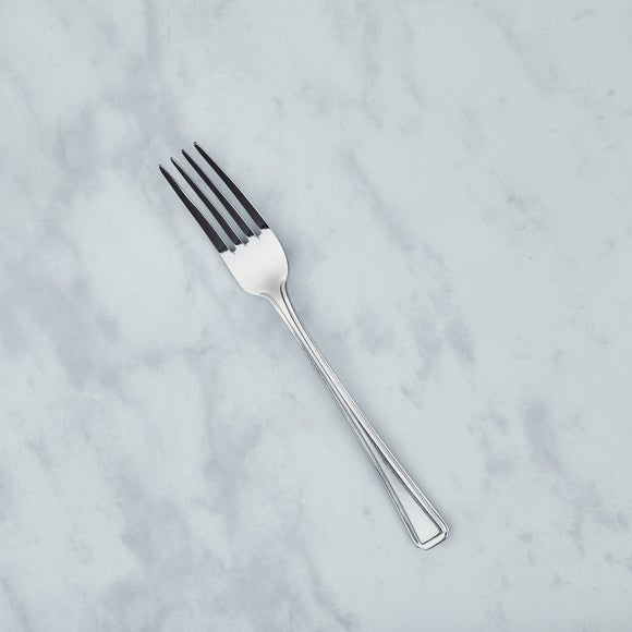 Expand your current cutlery set with this single, silver fork to help achieve a sophisticated look in your dining area.• Lined handle• Dishwasher safe Introduce a subtle elegant look in your dining area with this patterned fork, featuring a curved, engraved handle in a bold mirror finish. Dishwasher safe for your convenience, this engraved fork can be effortlessly cleaned before your next meal. Brand Dunelm Category Forks Colours available One colour available in Silver Dishwasher safe Suitable Material Stainless steel Pack size One fork Pattern Patterned Sizes available One size available in L 19cm (7") ...