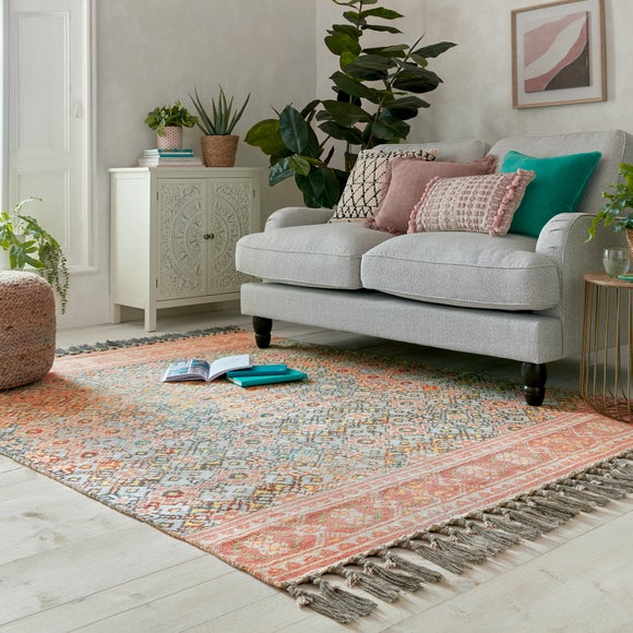 The Estell Chenille Rug pairs a traditional design with an heirloom distressed finish for an artisanal look. H&-woven by skilled rug craftspeople & h&-finished with a tasseled effect & printed design, each of our carefully crafted pieces is unique, bringing its own personal signature to your space. We love using the Estell Chenille Rug to add a feminine element to bedroom floors. When opening, re-roll your rug pile out & leave in a warm room for 24 hours before putting in place, this will help to reduce wrinkles & curling from packing. Do not pull any loose threads, please cut them carefully with scissors to remove. Turn your rug regularly to ensure even wear & to reduce pressure marks from furniture. Suitable for use with a heated floor. Before using any cleaning products on your rug, test on an inconspicuous area first to ensure it does not affect the colour. Clean spills immediately by blotting with a clean dry white cloth - do not rub as this may stain the fibres. Vacuum your rug regularly to remove everyday dirt, we recommend the use of a suction type vacuum or change your roller setting to the highest setting to reduce contact with the surface. Keep aware from fire. Do not leave babies & children unattended. ...