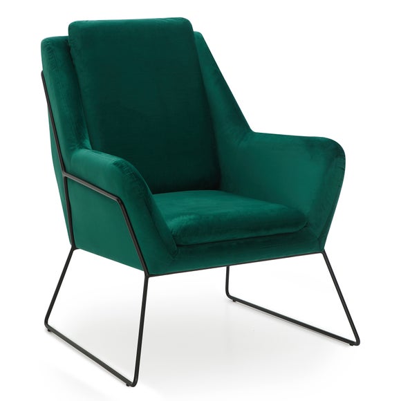 Elegantly crafted, this fully assembled armchair is upholstered in a soft polyester fabric & features an emerald green colour way. Inspired by modern & clean styling, this armchair is designed with a sturdy metal frame & comfortable seat to ensure maximum support. Seat Height 45cm Seat Width 50cm Seat Depth 50cm Also available in [ Brown] (https://www.dunelm.com/product/ferne-metal-framed-chair-distressed-brow-1000123911) & [ Grey] (https://www.dunelm.com/product/ferne-metal-framed-chair-grey-pu-1000123912).[ Click here] (https://www.dunelm.com/infodocs/downloads/ Furniture-Sizing-Guide.pdf) to check out our handy sizing guide to help you find out if you’ll be able to get your new furniture into your home. ...
