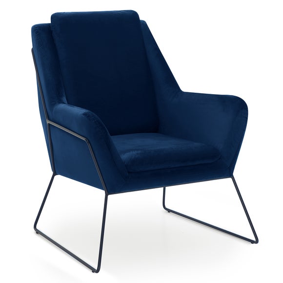 The vibrant Ferne Velvet Accent Chair features a unique design that is sure to make it the focal point of any living space. The Ferne is upholstered in gorgeous, soft to the touch fabric & supported by beautiful & sturdy metal framing. Comfort is provided thanks to the foam & fibre filled seat & back cushions. Please note, unfortunately we cannot deliver this item to the Channel Islands.[ Click here] (https://www.dunelm.com/infodocs/downloads/ Furniture-Sizing-Guide.pdf) to check out our handy sizing guide to help you find out if you’ll be able to get your new furniture into your home. ...