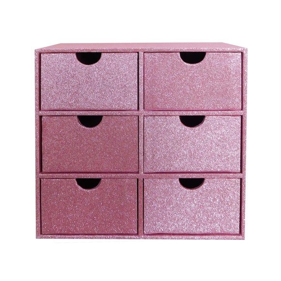 Designed with gorgeous pink glitter, this set of six drawers with handles is a popular design for children's bedrooms to neatly store all of their trinket pieces. ...