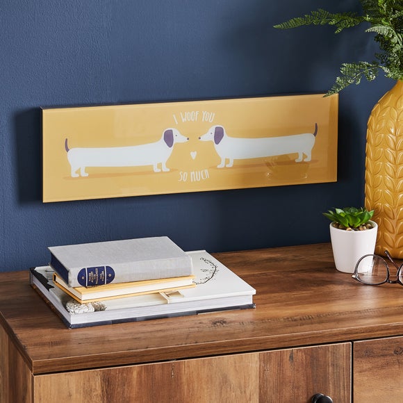 Brighten up your home with this "I Woof You" sausage dog plaque. Perfect for animal lovers, this yellow & grey edged MDF plaque would be ideal to display in any room. ...