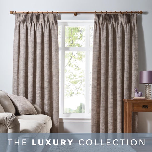 Made with basketweave textured fabric woven with subtle soft blossom tones, this pair of plain Thornton curtains feature a full lining, complete with a traditional pencil pleat header & available in a selection of sizes to suit your requirements. Please note: these curtains are sold as a pair. ...