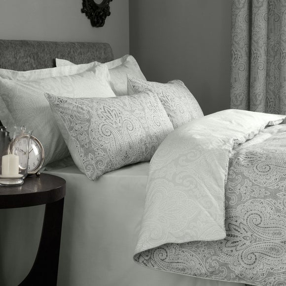 Our grey oxford pillowcase is finished with a white paisley print and is made from soft and durable polycotton.