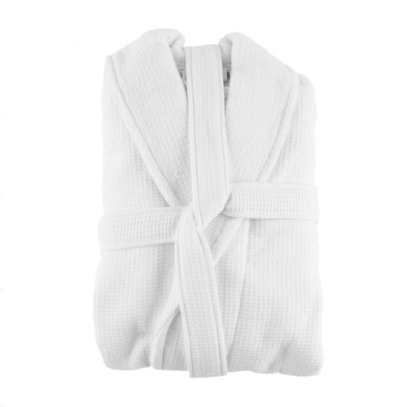 In a fresh white colour way, this 5A 100% cotton dressing gown is designed for enhanced softness & features a sophisticated waffle texture, available in a choice of sizes. ...