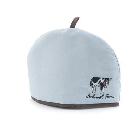 Available to order online now, our Bakewell Farm tea cosy is the ideal way to keep your tea piping hot. Ensure a deliciously warm cup of tea with our blue teapot cover Our charming tea cosy features a gentle blue colour with brown edging, & an adorable cartoon cow for some rural charm. Just pop it over your favourite teapot to keep the liquid inside at the perfect temperature, reducing wastage & letting you enjoy your freshly brewed tea for longer. With a charming finish, this pattered tea cosy also features a handy loop at the top for easy removal. For a delightfully rural aesthetic in your kitchen, why not check out the other matching items in the Bakewell Farm Collection. Please note: This product is subject to stock availability. Ask Dunelm a question Brand Dunelm Colours available One colour available in Blue Composition 65% polyester, 35% cotton Drying instructions Tumble dry on a medium heat setting Ironing instructions Not suitable for ironing Material Polyester, cotton Pack size One tea cosy Pattern Patterned Sizes available One size available in 34cm x 24cm (13" x 9") Washing instructions Machine washable ...
