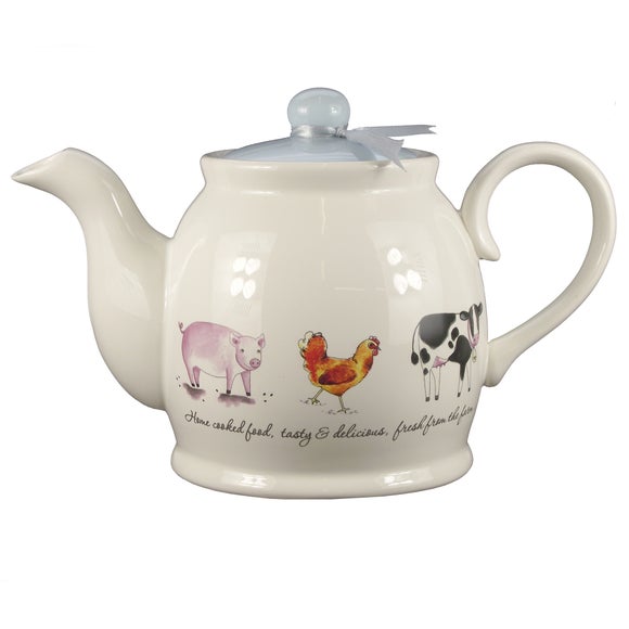 Now available to buy online today, our farmyard teapot with colourful cartoon animals will make a charming addition to your country style kitchen. Add a touch of country fun to your kitchen with our colourful teapot Featuring a selection of farm animal illustrations, pastel blue lid & white gloss finish, our traditional teapot will help you brew your tea in style with a country style look. Made from natural earthenware, our durable teapot can easily be washed in warm soapy water to help keep it in spectacular condition to serve guests afternoon tea. Why not combine our rustic crockery with coordinating tea, sugar & coffee canisters from our Bakewell Farm Collections for a complete kitchen set. Please note: This product is subject to stock availability Ask Dunelm a question Brand Dunelm Care instructions Hand wash in warm soapy water Colours available One colour available in Blue Material Earthenware Pattern Novelty Sizes available One size available in W 23cm (9") x L 15cm (6") x H 12cm (5") ...