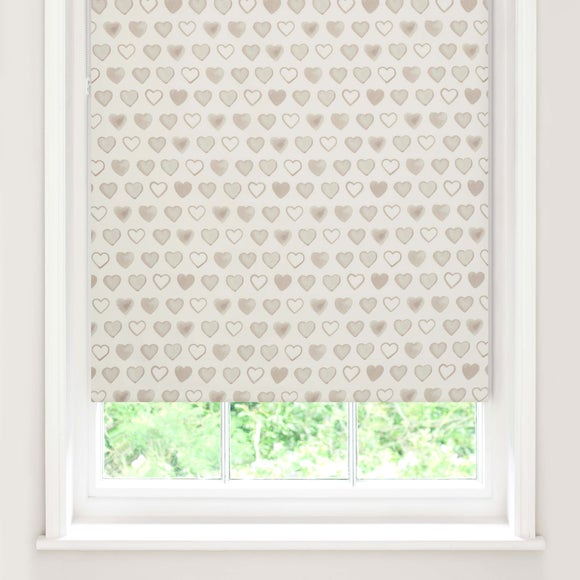 Featuring a printed heart design, this roller blind is crafted from stain resistant fabric with a blackout coating to exclude unwanted light entering. Available in a selection of widths. Child safety: Install & use cord safety devices according to manufacturer's instructions. Read our Blind Safety Guide for more information. These blinds can be cut down to suit your requirements. Please note: Blinds cannot be returned once altered. ...