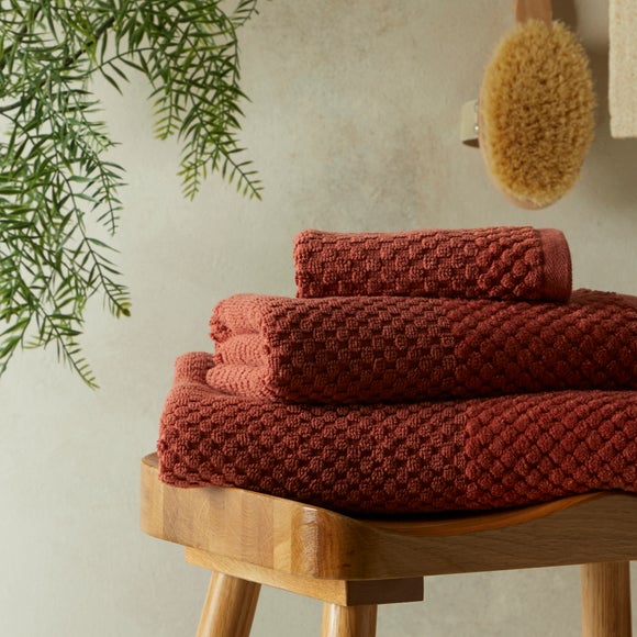 In a stylish terracotta colour way, this textured weave towel is perfect for adding a soft & lovely touch to your bathroom. This towel is super absorbent & machine